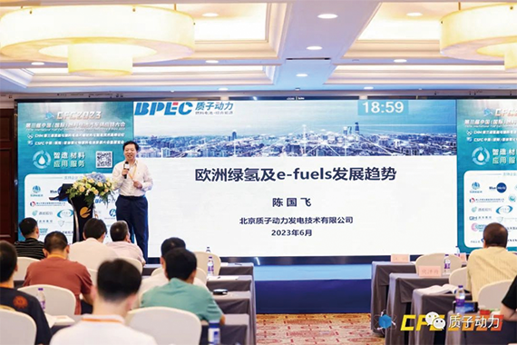 由全球氫能網聯合氫能、燃料電池及相關產業鏈企業、科研團體共同聯合發起的《CFC2023 第三屆中國(國際)燃料電池汽車供應鏈大會暨展覽會》于6月19日在杭州順利開幕!質子動力董事長陳國飛受邀參加,并分享了關于“歐洲綠氫及e-fuels發展趨勢”,與會嘉賓熱情高漲,相互交流切磋。